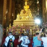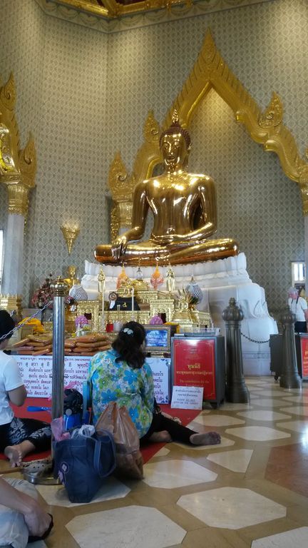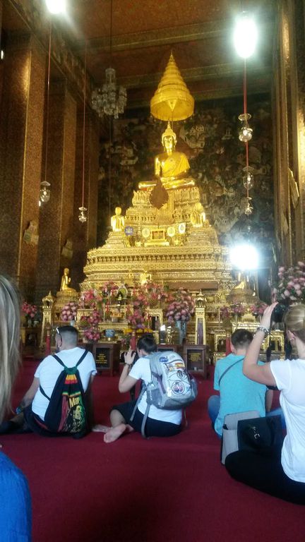 Nachdem Jonas sich noch von einem echten Buddhistischen Mönch hat erklären lassen, was die Malereien an den Wänden der Stätte bedeuten ( wir haben nur 7 Köpfe und Medusa verstanden ), sind wir mit dem Boot in Richtung Chinatown gefahren. Dort war es ziemlich chaotisch und voll. Und es gab wirklich allen erdenklichen Blödsinn zu kaufen. Am Ende der Straße befindet sich noch ein Wat mit einer Buddha Figur aus 5,5t Massivgold. Auch die konnten wir uns nicht entgehen lassen.