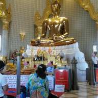 Unser zweiter Tag in Bangkok stand im Zeichen des goldenen Buddhas. Zuerst haben wir uns den liegenden Buddha im Wat Phao angeschaut, mit seinen 64m Länge war er doch ganz schön beeindruckend ( unter uns nennen wir ihn den faulen Buddha) und passte definitiv auf kein Photo ganz drauf. Insgesamt findet man in der Anlage über 800 goldene Buddha Statuen, wirklich überall, draußen und drinnen.