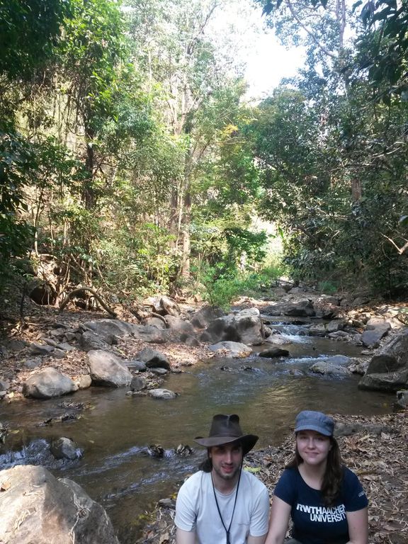 Nachdem die Hähne das gesamte Dorf früh morgens geweckt haben, ging es nach einem leckeren Frühstück (Pfannkuchen mit Obst) weiter. Den zweiten Tag ging es zumeist am Fluß entlang. Oft mussten wir diesen auch queren oder sind einfach ein Stück im Wasser weiter gelaufen. Am Nachmittag sind wir dann in Chans Garten angekommen, wo wir uns dann nach Tee und Bananen von ihm verabschiedet haben.