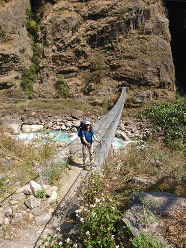 Eigentlich wollten wir nur eine ganz kurze Tour nach Chamje machen (2 Stunden), da das Dorf aber nicht sehr einladend wirkte sind wir dann doch noch weiter gelaufen. Dabei ging es immer auf einem schmalen Pfad oberhalb des Flusses lang.