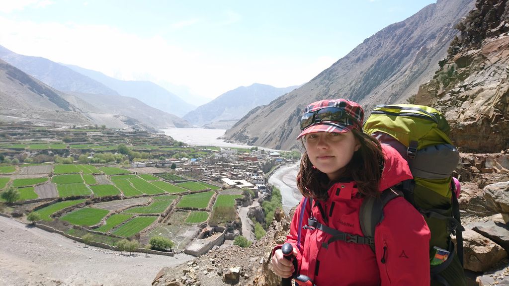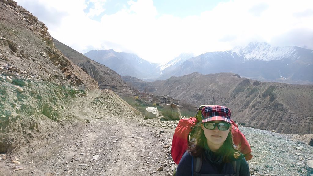 Heute ging es wieder weiter. Von Muktinath ging es durch viele kleine Dörfer nach Kagbeni ins Tal. Dabei hatten wir zurück immer den Thorong La Pass im Blick, leider den oberen Teil in Wolken. Ansonsten war die Landschaft trocken und wüstenartig.