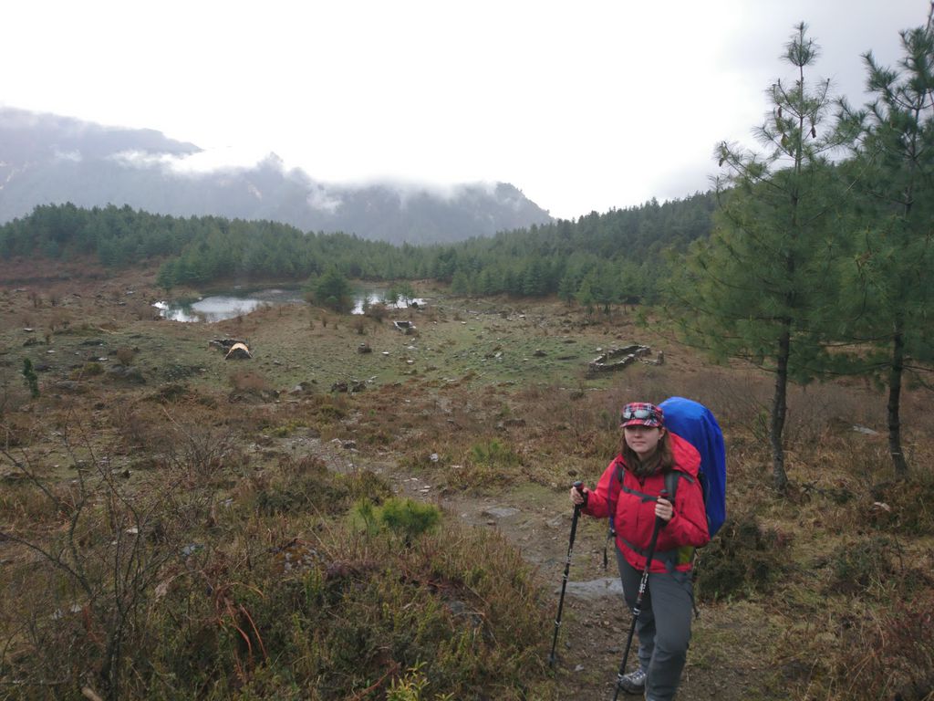 Leider war die Sicht am Morgen auch nicht besser, so dass wir im Nieselregen losgelaufen sind zu den zwei Seen Budrosso und Sekung. Es ging durch den Pinienwald und über ein gewaltiges Geröllfeld an den Yaks vorbei. Wir sind auch durch ein velassenes Dorf gelaufen, welches vor 35 Jahren von einer Lawine getroffen wurde.
