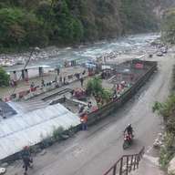 Nach einer Mittagspause in Kokethanti sind wir dann gegen 2 in Kalopani angekommen. Dort wollten wir in einen Jeep nach Tatopani steigen. Als die Fahrer uns einen übertriebenen Preis nannten, haben wir es uns anders überlegt die einfach den nächsten Truck angehalten. Mit 5 Personen in der kuscheligen Kabine waren es dann theoretisch nur noch 2 Stunden bis nach Tatopani. Mit Baustellen und Einsammeln weiterer Mitfahrer dann aber doch 5 Stunden 'Fahrt'.