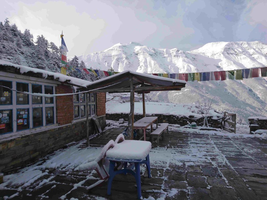 Dann ging es entspannt in 2.5 Stunden zurück ins Tal nach Braga zum Mittagessen. Von dort waren es dann nur noch 30 Minuten bis Manang.