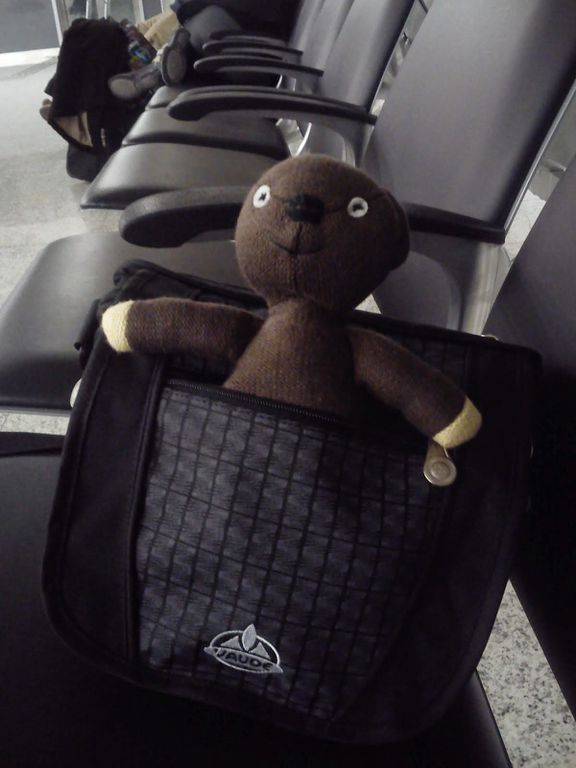 Der Zwischenstop ist erreicht, nach 12 Stunden Flug sind die letzten 3 Stunden nach Buenos Aires nur noch Formsache. Teddy wird auch schon ungeduldig.