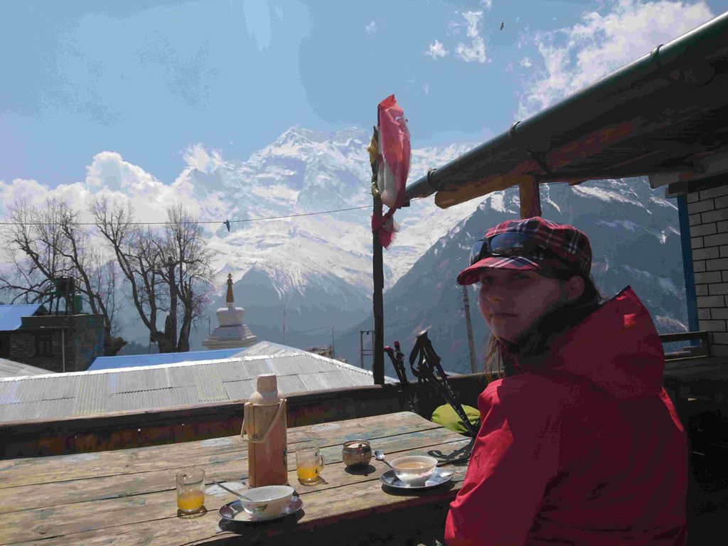 Von dort aus ging es dann 1,5 Stunden steil bergauf, bis wir in Gyaru angekommen sind. Dort gab es dann die traditionelle Mittagspause mit Lemon tea und garlic soup, die wir uns nach knapp 400m Aufstieg auch reichlich verdient haben.